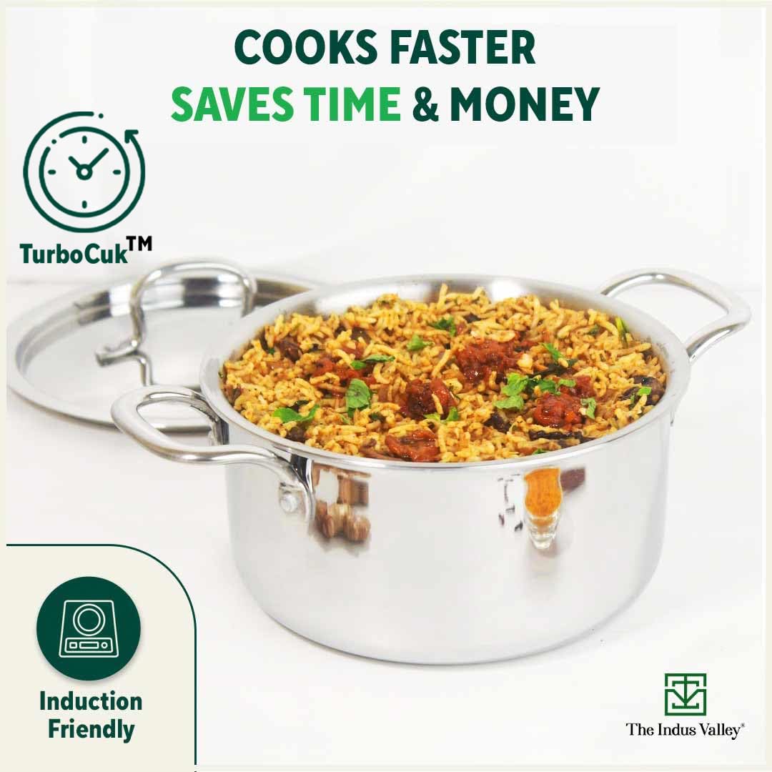 Triply Stainless Steel Stock Pot Or Casserole With Steel Lid | Very Small, 20cm, 7.8 Inch, 2.1 Liters, 1.3kg | Induction Friendly | Nonstick 3-layer Body, 100% Pure & Toxin-free