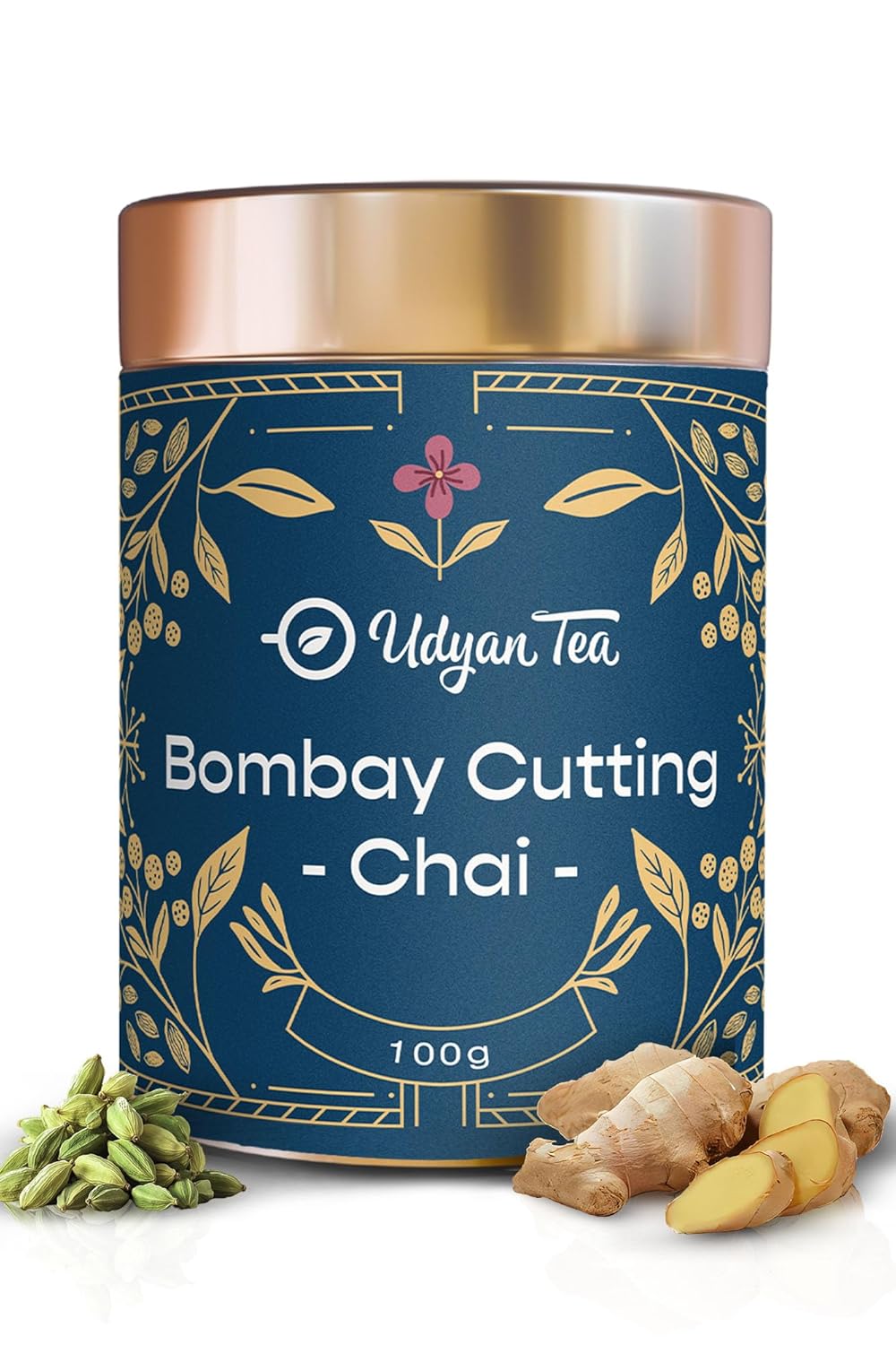 Udyan Tea Bombay Cutting Chai - 100gm, 3.5 Ounce | Strong Masala Tea With Ginger & Cardamom - Authentic & Refreshing Elaichi Adrak Chai | High Caffeine Tea Leaf
