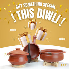 WHAT IS A DEEP BURNED CLAY POT OR BLACK POTTERY? It is a very old traditional Pottery technique. A Normal red Clay pot is Kilned once. Deep Burned Pots are kilned two times, Second time, potters Burn the pots stacked together with wood and Hay at a temperature Nearly 1200*C. This will Make the pots very strong and Durable. During the process Pots turn Black in colour. Deep Burned Pots Can Withstand High temperature when used on Gas stove.