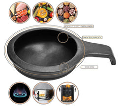 2 WOODEN SPATULAS COMPLIMENTARY !! Size_1Ltr : Material_ CLAY : Colour_ BLACK : Type_ COOKING & SERVING VESSEL Best For Cooking : Tempering, Tadka, Curries For Family of 2-3