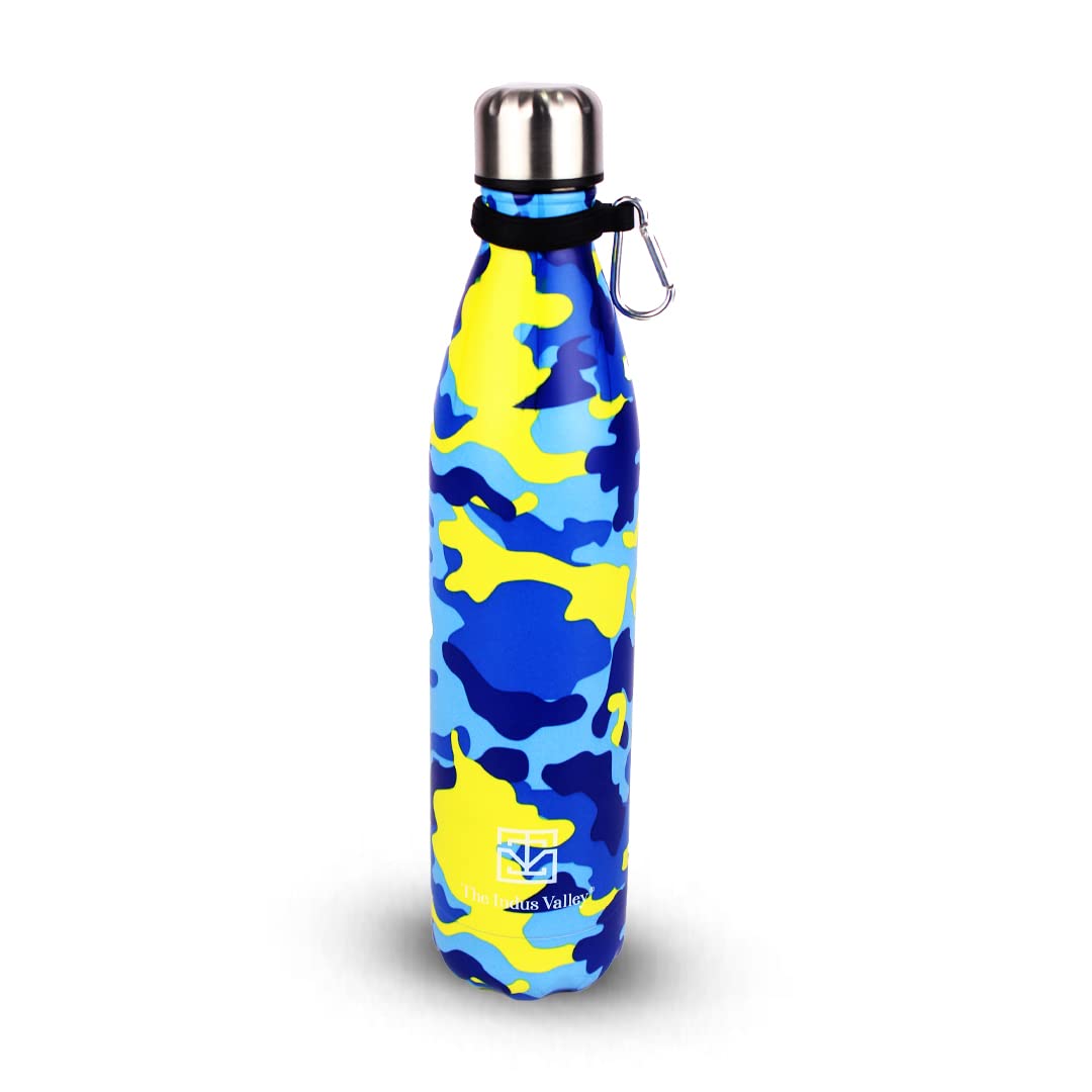 Vacuum Insulated Stainless Steel Cola Bottle For School, College, Office | Yellow & Blue, 1 Liter | Double Walled Vacuum, Hot & Cold Temperature, Leak Proof, Bpa-free