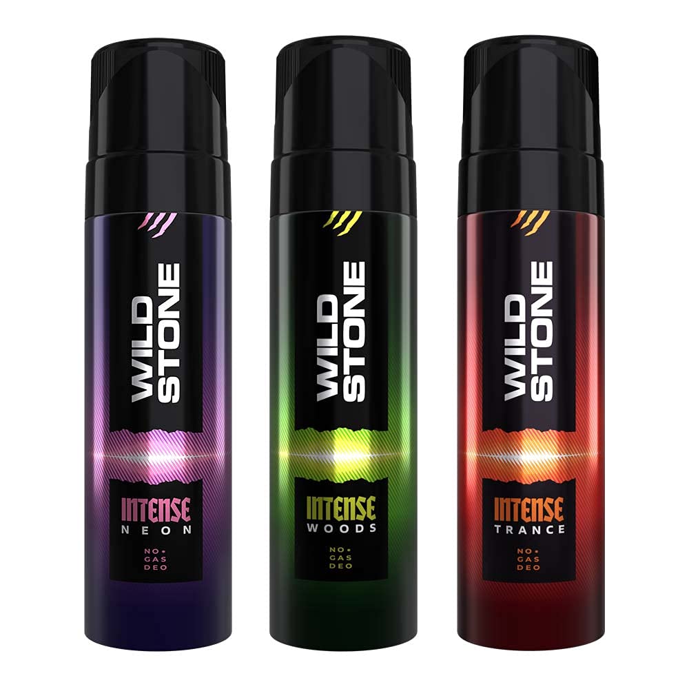 Wild Stone Intense Neon, Woods & Trance No Gas Long Lasting Deodorants Body Spray For Men 360ml 12.1 Fl.oz.| Pack Of 3