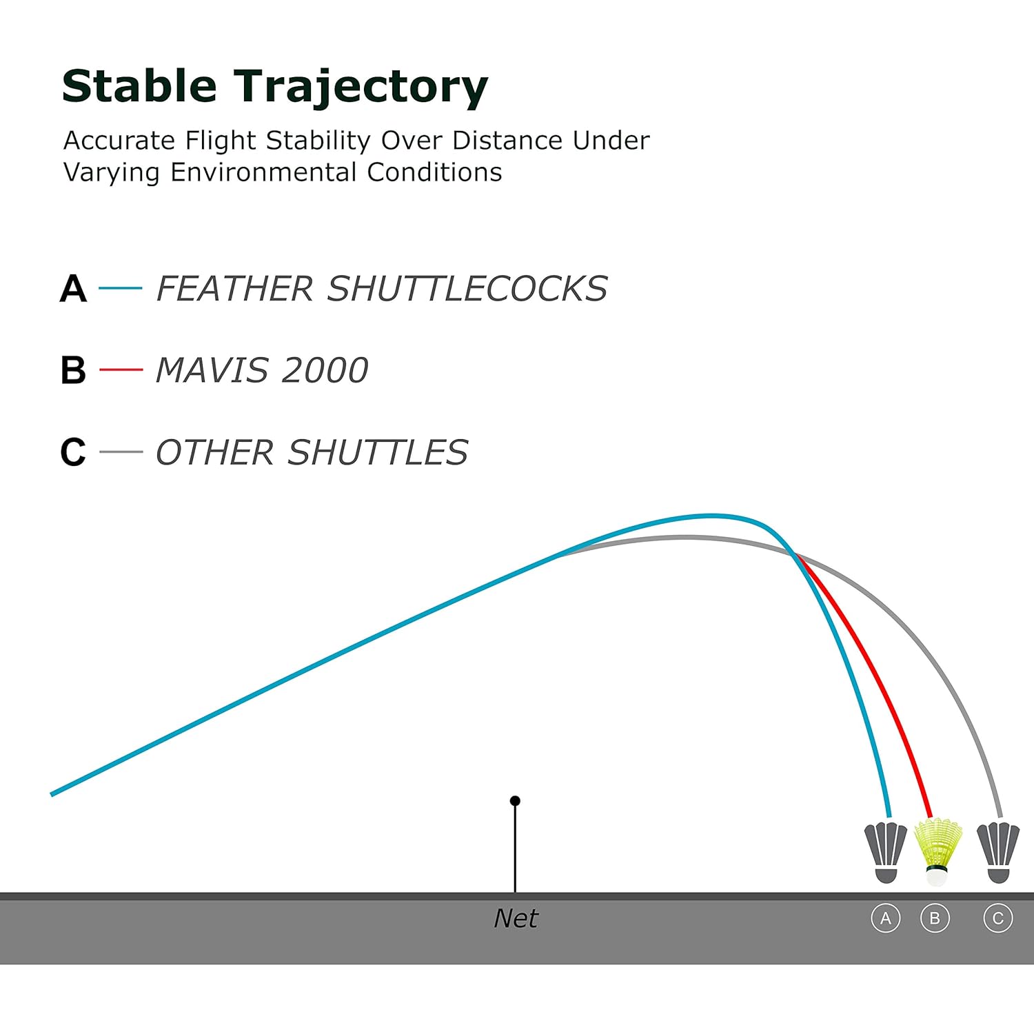 Yonex MAVIS 2000 Green Cap Nylon Shuttlecock, Pack Of 6, Colour - Yellow
